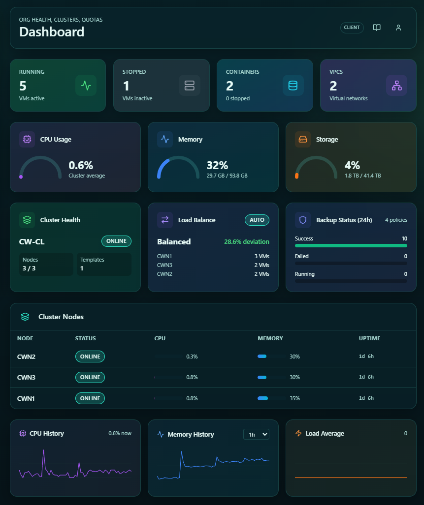 Install the Pull-Agent on your Proxmox clusters. Secure WebSocket connection. No exposed ports. Your hardware stays sovereign.
